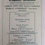 1969: AARON COPELAND & MARIAN ANDERSON: A tribute to Abraham Lincoln includes Anderson’s narrated excerpts of letters and Copland’s composition: “A Lincoln Portrait.”